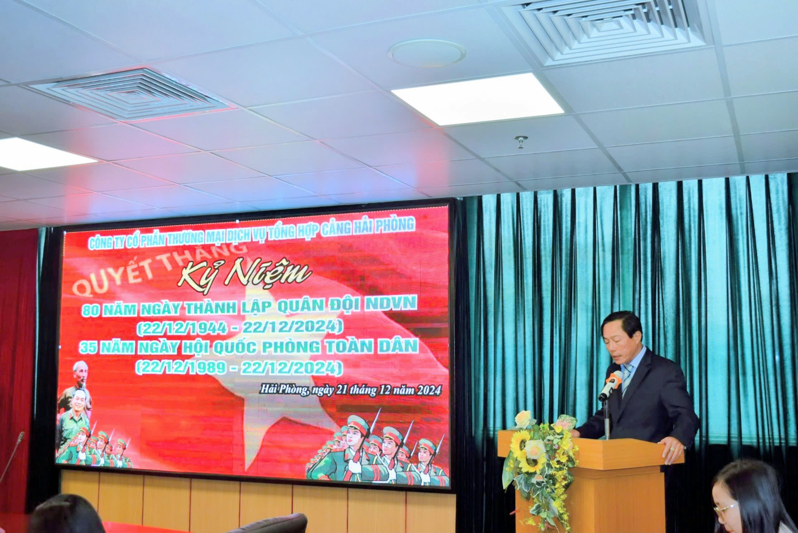 Tại buổi Gặp mặt, các đại biểu cùng nhau ôn lại truyềnthống cách mạng và những chặng đường lịch sử vẻ vang của Quân đội Nhân dân Việt Nam anh hùng và truyền thống đó đã được xây dựng kết tinh mang lại sự pháttriển kinh tế vượt bậc của Việt Nam nói chung và thành phố Hải Phòng nói riêng. Thành tích đó cũng tạo nên những kết quả tốt đẹp qua 24 năm thành lập của Công ty CP TM DV TH Cảng Hải Phòng .