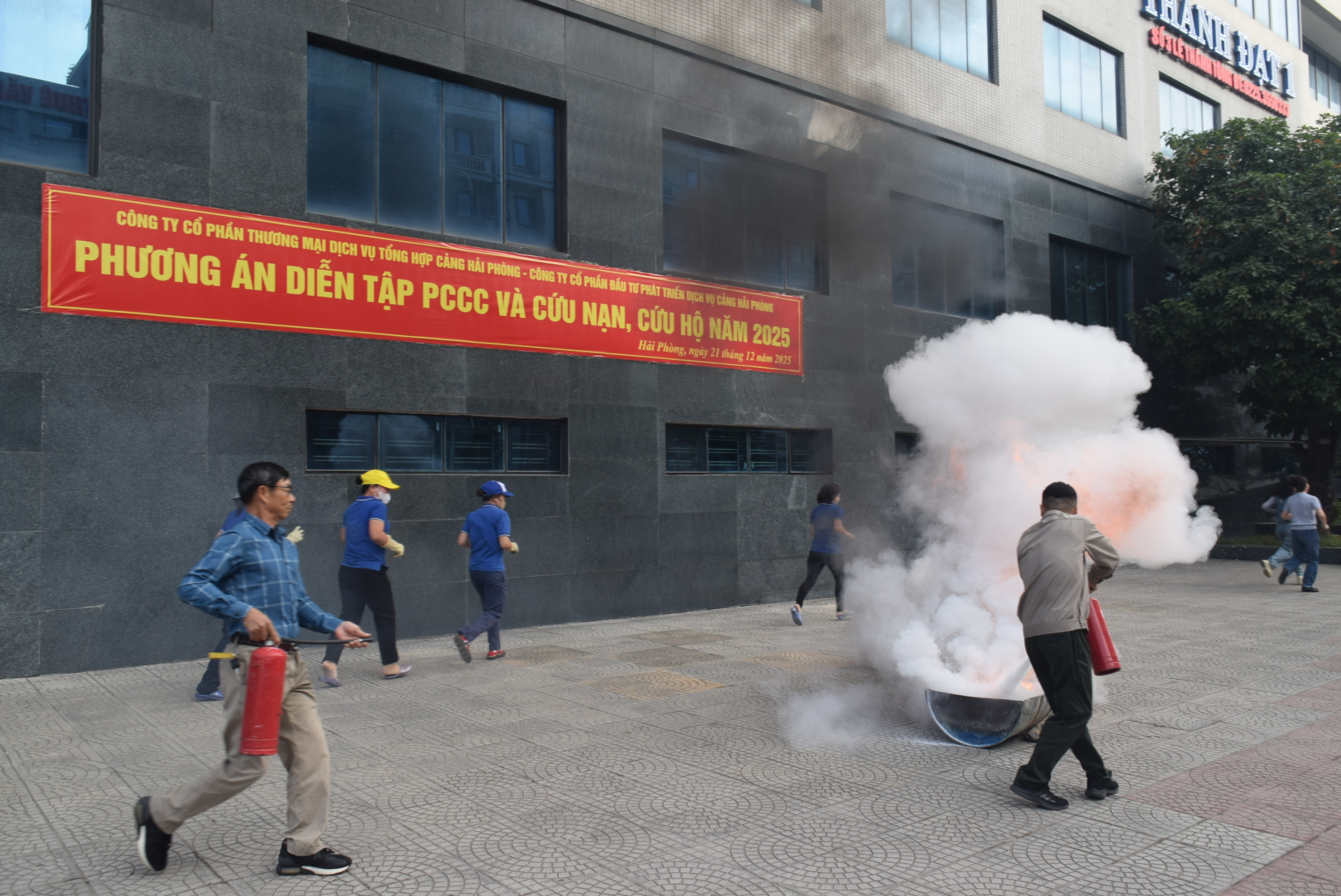 Tin tứcNhằm thực hiện tốt công tác PCCC và CHCN theo quy định của Luật phòng cháy và chữa cháy, nâng cao sự phối hợp chỉ huy về chiến thuật, kỹ thuật chữa cháy và cứu nạn, cứu hộ (CNCH) giữa lực lượng chữa cháy chuyên nghiệp với lực lượng chữa cháy ở cơ sở, ngày 21/12/2025, Công ty CP TM DV TH Cảng Hải Phòng phối hợp với Đội Chữa cháy và CNCH khu vực 1 (Phòng Cảnh sát PCCC vàCNCH) tổ chức diễn tập phòng cháy chữa cháy và cứu nạn, cứu hộ tại khu vực toà nhà Thành Đạt 1.